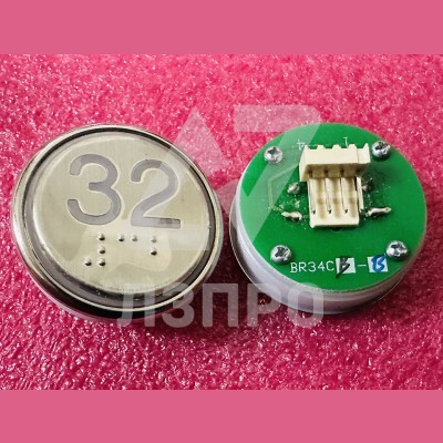 Кнопка "32" с шрифтом Брайля, синяя подсветка BR34C Xizi Otis