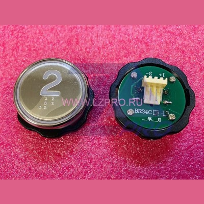 Кнопка "2" с шрифтом Брайля, синяя подсветка BR34C Xizi Otis